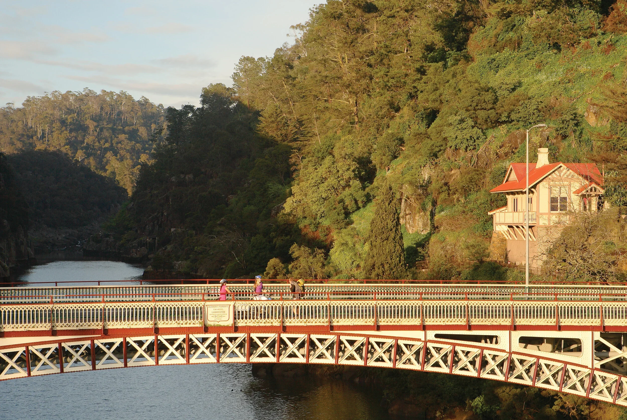 The bridge is an unofficial border for the spectacular Cataract Gorge.