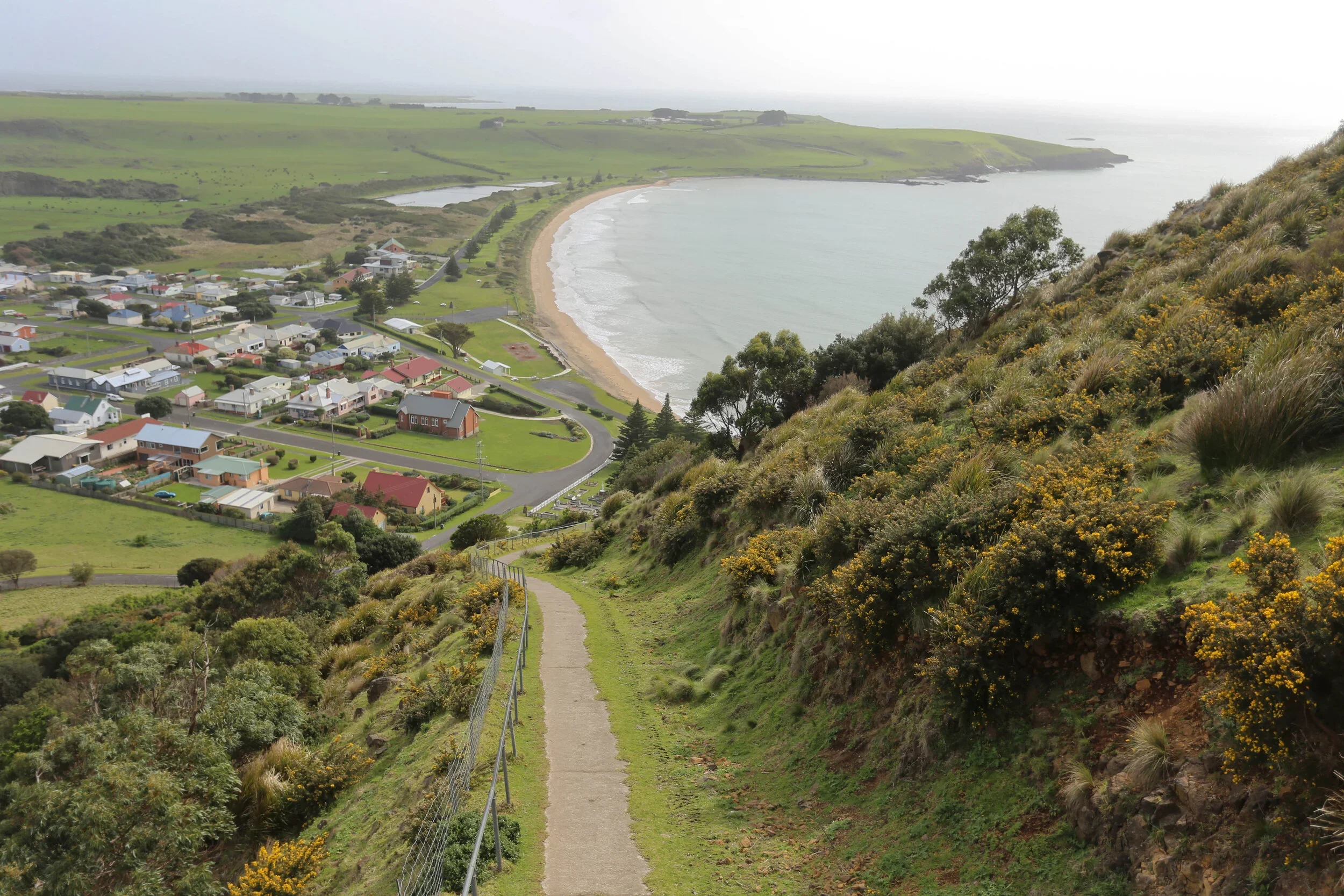 The historic village of Stanley, in far north-west Tasmania, is nestled at the base of The Nut, a sheer-sided bluff - all that remains of an ancient volcanic plug.