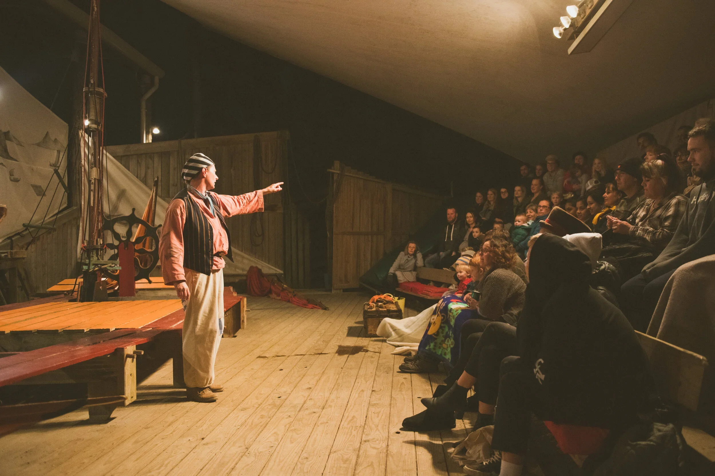 The Ship That Never Was is a live professional theatre production, performing in Strahan since 1993, written by Richard Davey and produced by The Round Earth Company.